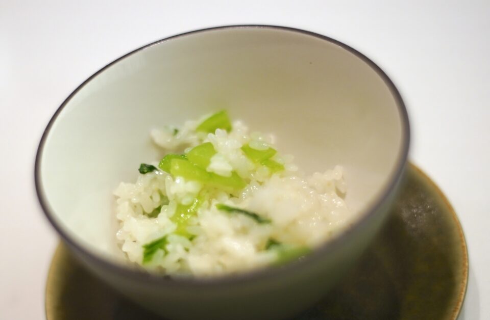 塩味のスープ  ラードをたくさん入れて完全に火を入れる。青梗菜に。そして氷水でひやす。急冷することです、きゆとうめいかんでる