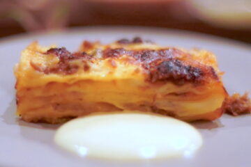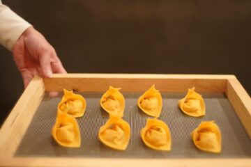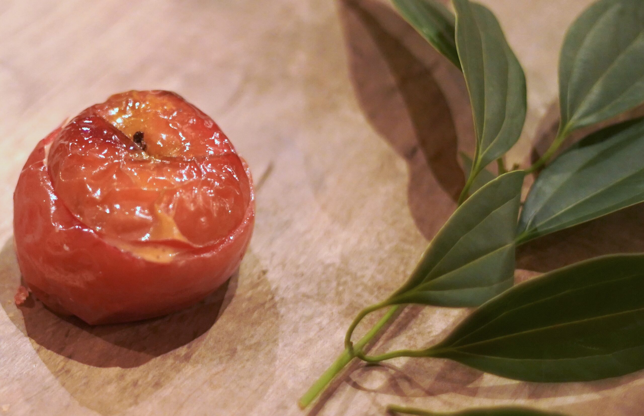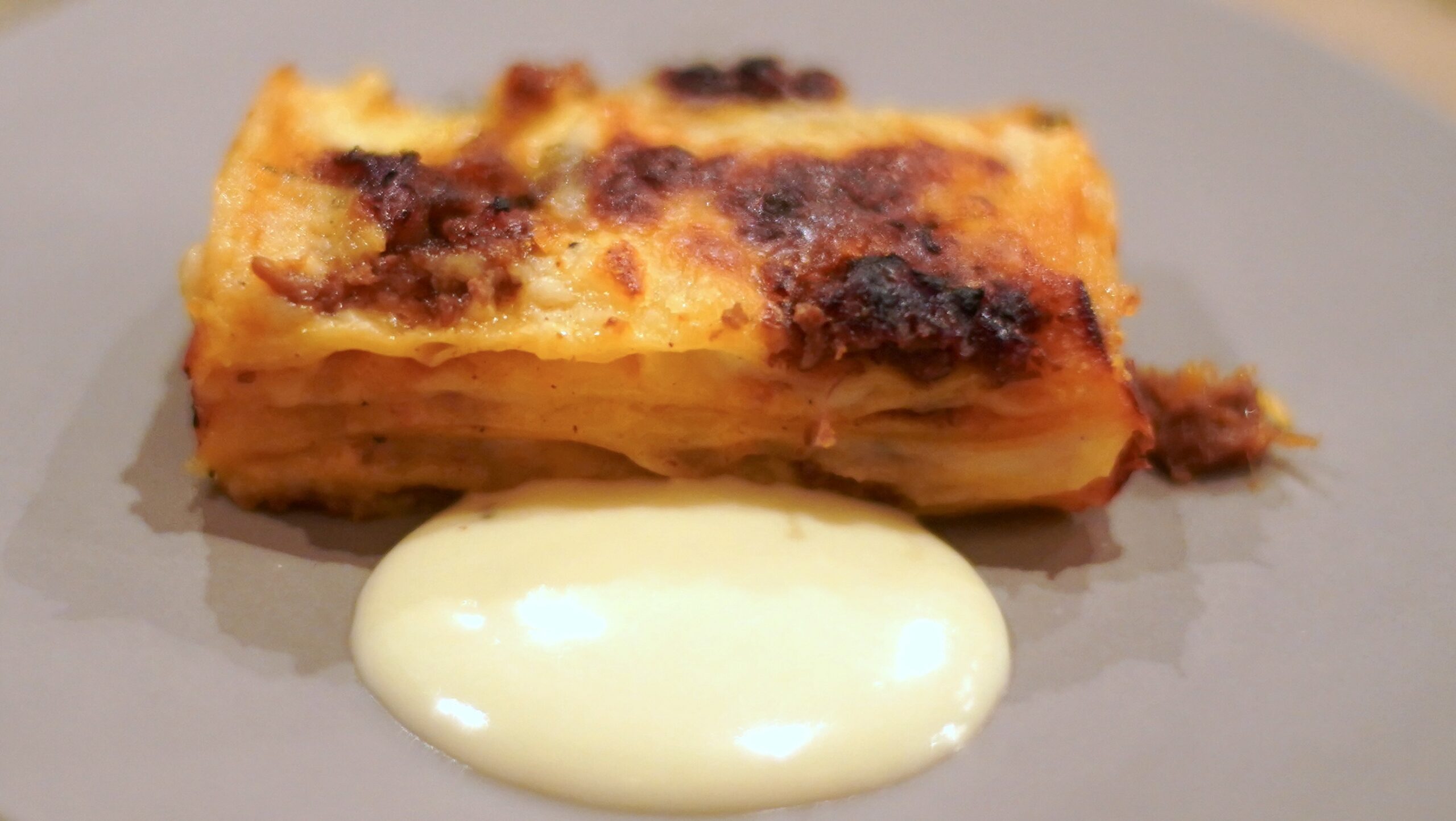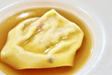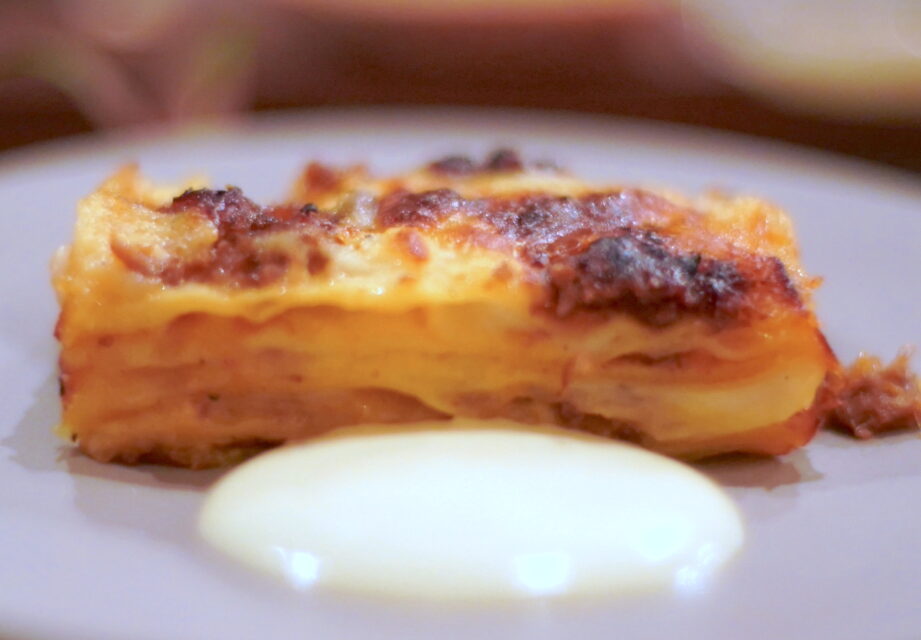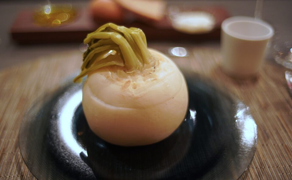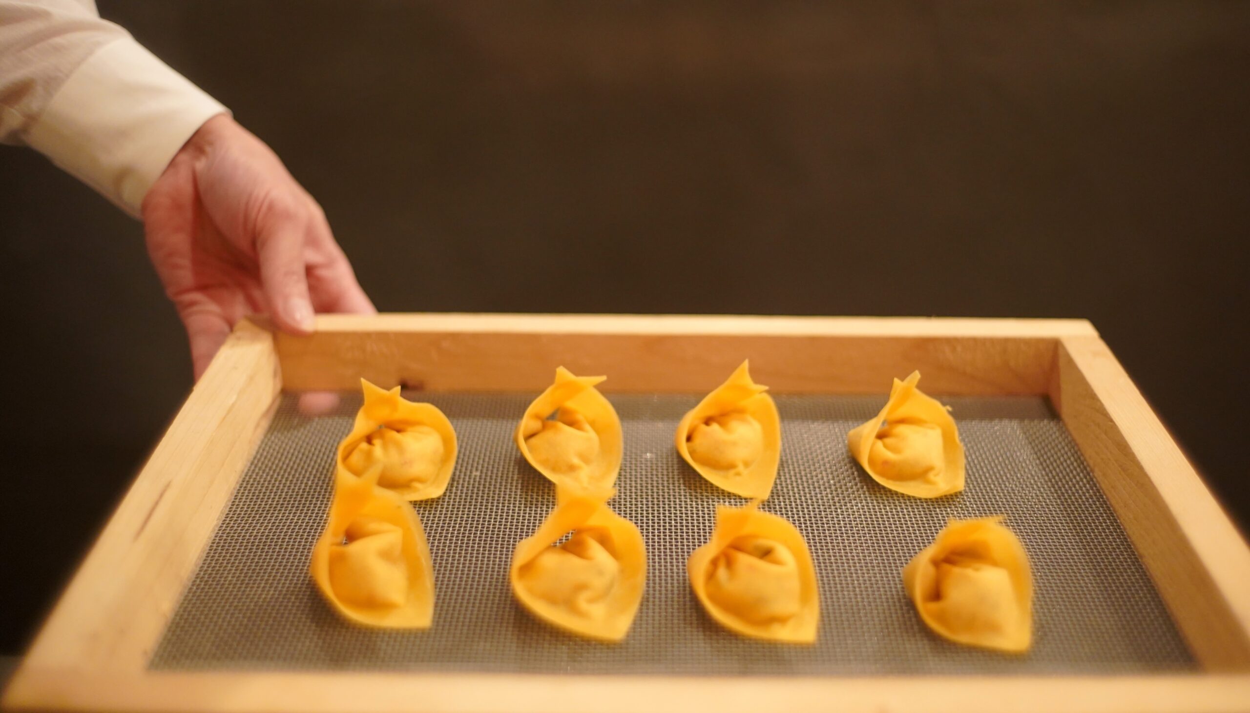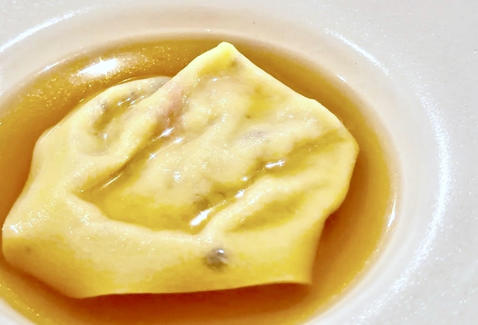 トルテローネのリピエノは、根セロリと香茸、イバラカニモドキの身を合わせた物を詰めてある