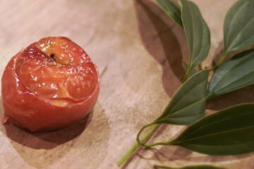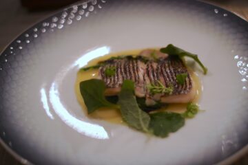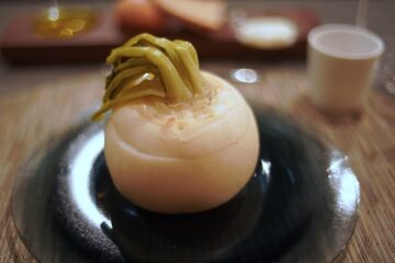 レモンマートル、ムカゴ、ジャガイモのクリーム、