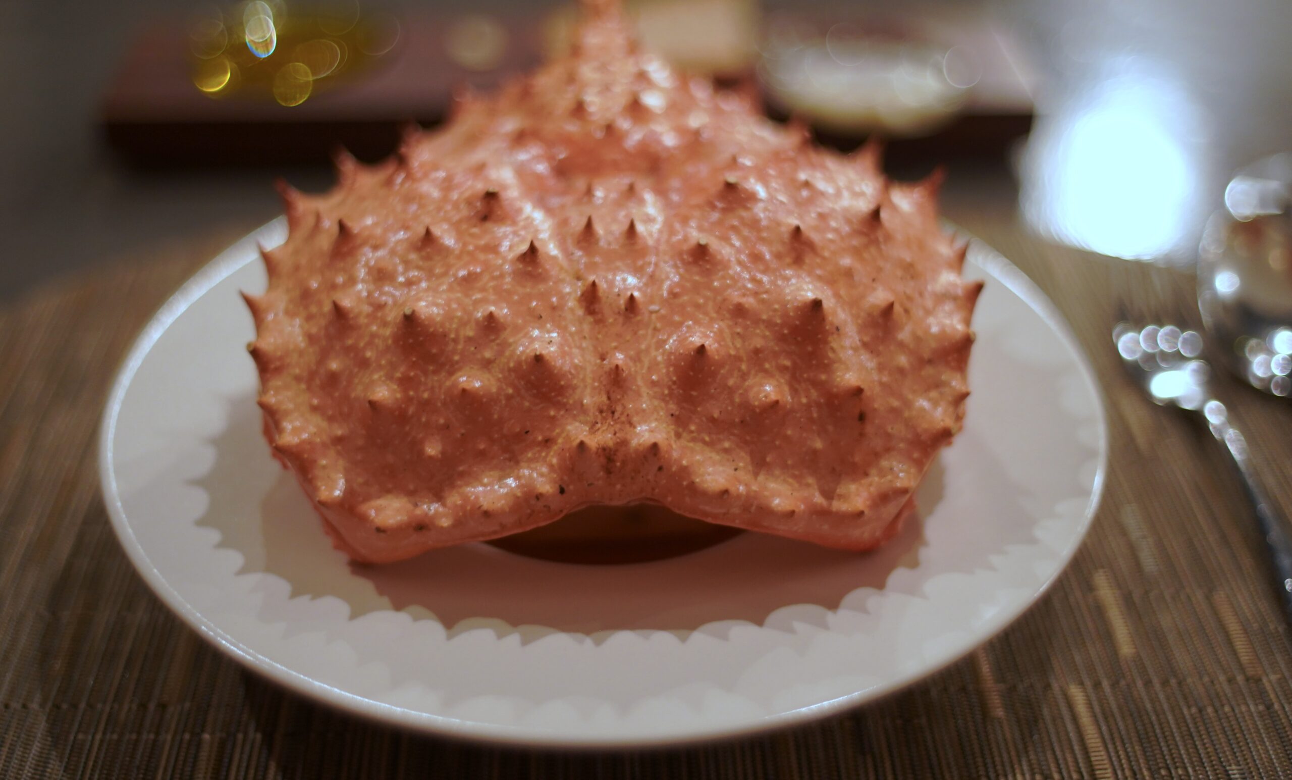 ブロードは茨城の平飼いの鴨でコンソメをとって、それをベースにイバラガニモドキの味と香りをのせている。