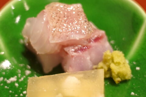 最初からエロい。 真はた煮凝りと塩じめは、まず煮凝りを食べ、その口に残った旨みの余韻を残し、塩じめした刺身を口に運ぶ。 グイグイと噛ませる、凛々しい食感であ……