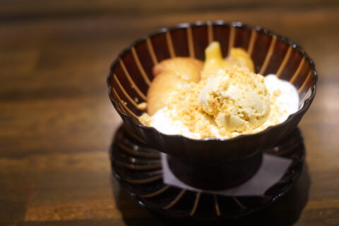1日1甘 , 食べ歩き18麻布台ヒルズ「デブスブリアンツァ」 ★南瓜のプリン 芋焼酎の泡 ミルクのジェラート。 ……