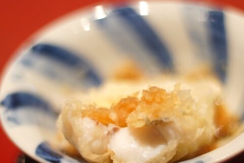 食べ歩きエボダイは、ふわりと空気を含み、その穏やかな甘みと優しい衣が拮抗している。 結び太刀魚は、焼いたエアリーなものとは違う、ムースのような、百合根のような食感が……