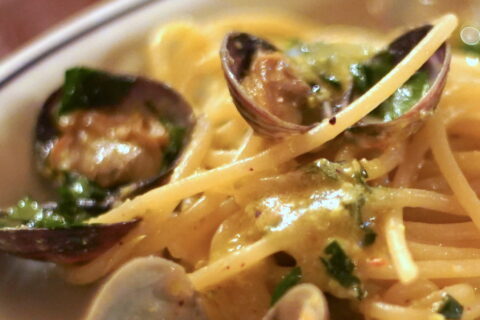 食べ歩きブロンテ産ピスタチオとアサリとレモンのスパゲットーニ. シチリア 風ケイパーとアンチョビトマトリコッタオリーブのスパゲットーニ こ……